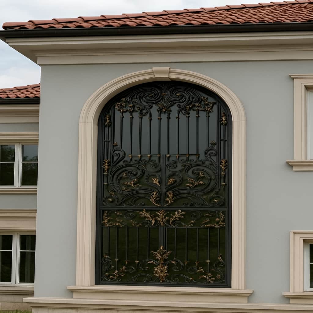 حفاظ پنجره مدل الیزه (Élysée), با الهام از معماری کلاسیک فرانسوی و سبک های سلطنتی باروک و روکوکو, یکی از شیک ترین و لوکس ترین حفاظ های پنجره به شمار می رود. این مدل نه تنها یک حفاظ معمولی است, بلکه به عنوان یک اثر هنری فاخر, با جزئیات پیچیده ای چون نقوش گیاهی و پیچک های سنگین, جلوه ای مجلل و سلطنتی به نمای ساختمان می بخشد. ساخته شده از آهن فرفورژه دست ساز با قالب های حجمی سفارشی, این مدل شامل طراحی های اساطیری و گیاهی در قسمت پایین, الهام گرفته از معماری کاخ ورسای و پاریس کلاسیک است. قسمت بالای حفاظ مجهز به میله های عمودی بلند با سرنیزه های اشرافی است که امنیت کامل را برای پنجره ها فراهم می کند. فریم اصلی با پروفیل تقویت شده و طراحی قوسی, هماهنگی کامل با قاب های رومی را ایجاد می کند. این مدل در رنگ های مختلف مانند مشکی طلایی, برنزی, مسی, زغالی و نقره ای براق یا هر ترکیب رنگ دلخواه شما قابل ساخت است. رنگ آمیزی با پوشش پودری الکترواستاتیک و پتینه دست ساز باعث می شود حفاظ در برابر تغییرات جوی و فرسایش بسیار مقاوم باشد. حفاظ پنجره مدل الیزه به ویژه برای ویلاهای لوکس, پروژه های خاص با نمای رومی یا اشرافی, عمارت های دوبلکس, لابی های ساختمان ها و نمای بزرگ پنجره ها طراحی شده است. این مدل به طور ویژه برای کسانی که به دنبال تجمل, امنیت و هنر در کنار هم هستند, طراحی شده و می تواند به عنوان یک ویژگی برجسته در نمای ساختمان ها ظاهر شود.