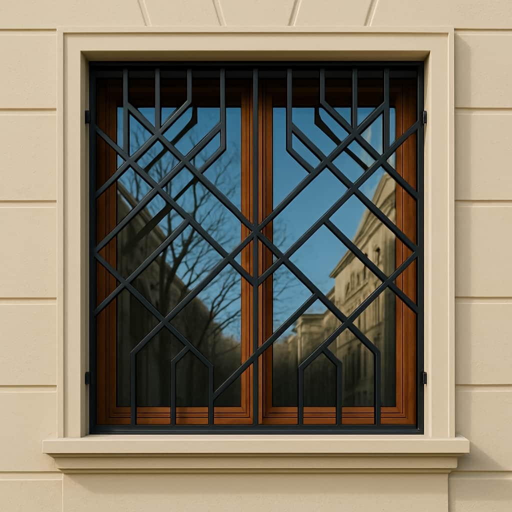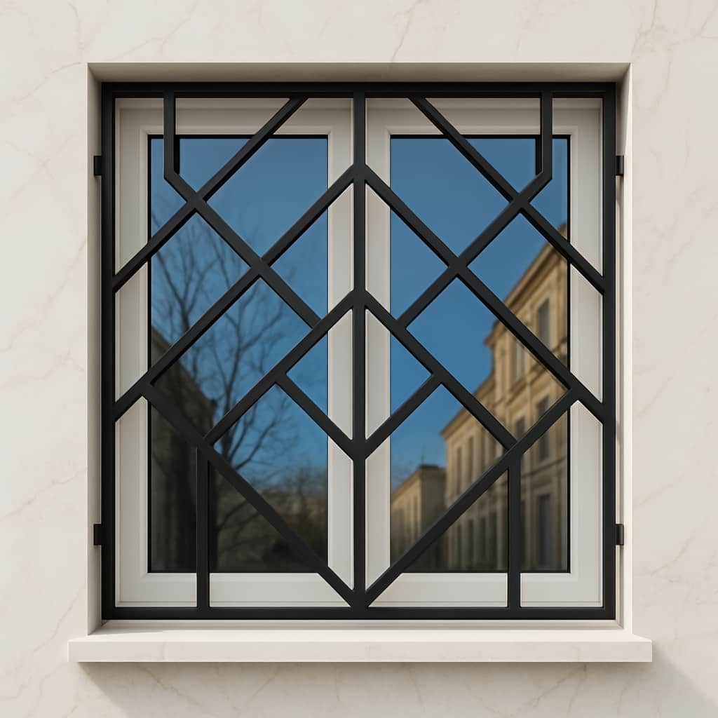 حفاظ پنجره مدل لوزی با طراحی زاویه دار و منظم خود, یک نمای مدرن و مینیمالیستی به ساختمان می بخشد. این مدل بدون استفاده از تزئینات سنتی, بر اساس اشکال هندسی ساده و گرافیکی طراحی شده است که با سبک های معماری معاصر به خوبی هماهنگ است. این مدل مناسب برای ساختمان های مدرن, اداری و ویلاهایی با نمای مینیمال و صنعتی است.