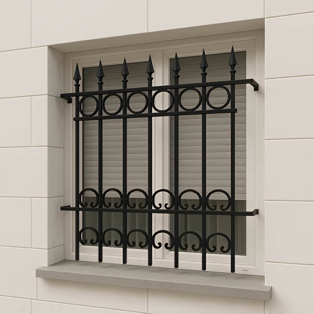 حفاظ پنجره مدل نیزه ای آوانگارد با طراحی منحصر به فرد خود, امنیت بالا و ظاهر زیبایی را به ساختمان شما اضافه می کند. این مدل مناسب برای ساختمان های تجاری, مسکونی و پروژه های مدرن است که به دنبال ایجاد یک نمای جذاب و مقاوم هستند. این حفاظ با تزئینات دایره ای و سرنیزه های فلزی باعث افزایش امنیت پنجره های شما می شود, بدون آنکه زیبایی نمای ساختمان شما آسیب ببیند.