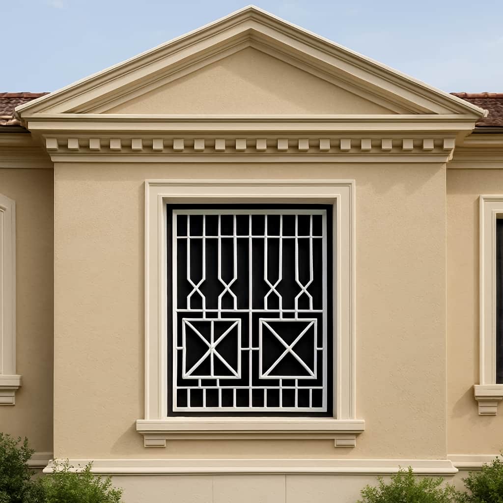 حفاظ پنجره مدل هندسی مدرن برای ساختمانهایی با نماهای سنگ اسلب تیره، سیمانی صاف یا سرامیکی تیره جلوهای لوکس و خاص پیدا میکند. این حفاظ بهویژه برای ساختمانهای شهری، پروژههای اداری و ویلاهای مدرن مناسب است. ترکیب این مدل با نردههای بالکن مدرن، نمایی چشمنواز و متفاوت ایجاد میکند. این مدل حفاظ نه تنها امنیت بالایی برای ساختمان شما فراهم میکند بلکه به نمای ساختمان نیز شکوه و جذابیت میبخشد.