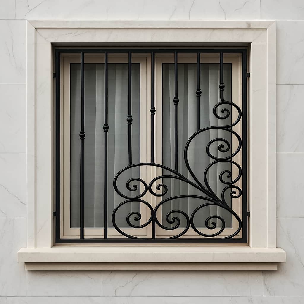 این مدل با طراحی هنرمندانه و فرم های پیچک مانند خود, جلوه ای کلاسیک و دکوراتیو ایجاد می کند. حفاظ پنجره مدل گل پیچ در رنگ های مختلف قابل تولید است, از جمله مشکی, سفید, قرمز, زغالی, نقره ای, طلایی, برنزی و سبز زیتونی. علاوه بر زیبایی, این حفاظ ها به دلیل پوشش پودری الکترواستاتیک, مقاوم در برابر زنگ زدگی و شرایط جوی هستند. این ویژگی ها باعث می شود که حفاظ پنجره مدل گل پیچ, هم زمان با زیبایی, دوام و استحکام بالایی را ارائه دهد.