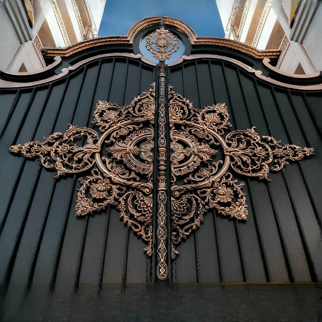 درب گل آرا به دلیل طراحی منحصر به فرد خود که شامل گل های فرفورژه و میلگردهای منحنی است, جلوه ای هنری و زیبا به فضای ورودی شما می بخشد. طراحی تاج گل دار و جزئیات دقیق, این درب را از دیگر مدل ها متمایز کرده و آن را به انتخابی عالی برای افرادی تبدیل می کند که به دنبال درب هایی با طراحی خاص و منحصر به فرد هستند. استفاده از رنگ طلایی در طراحی گل ها نیز جلوه ای فاخر و جذاب به این محصول بخشیده است.