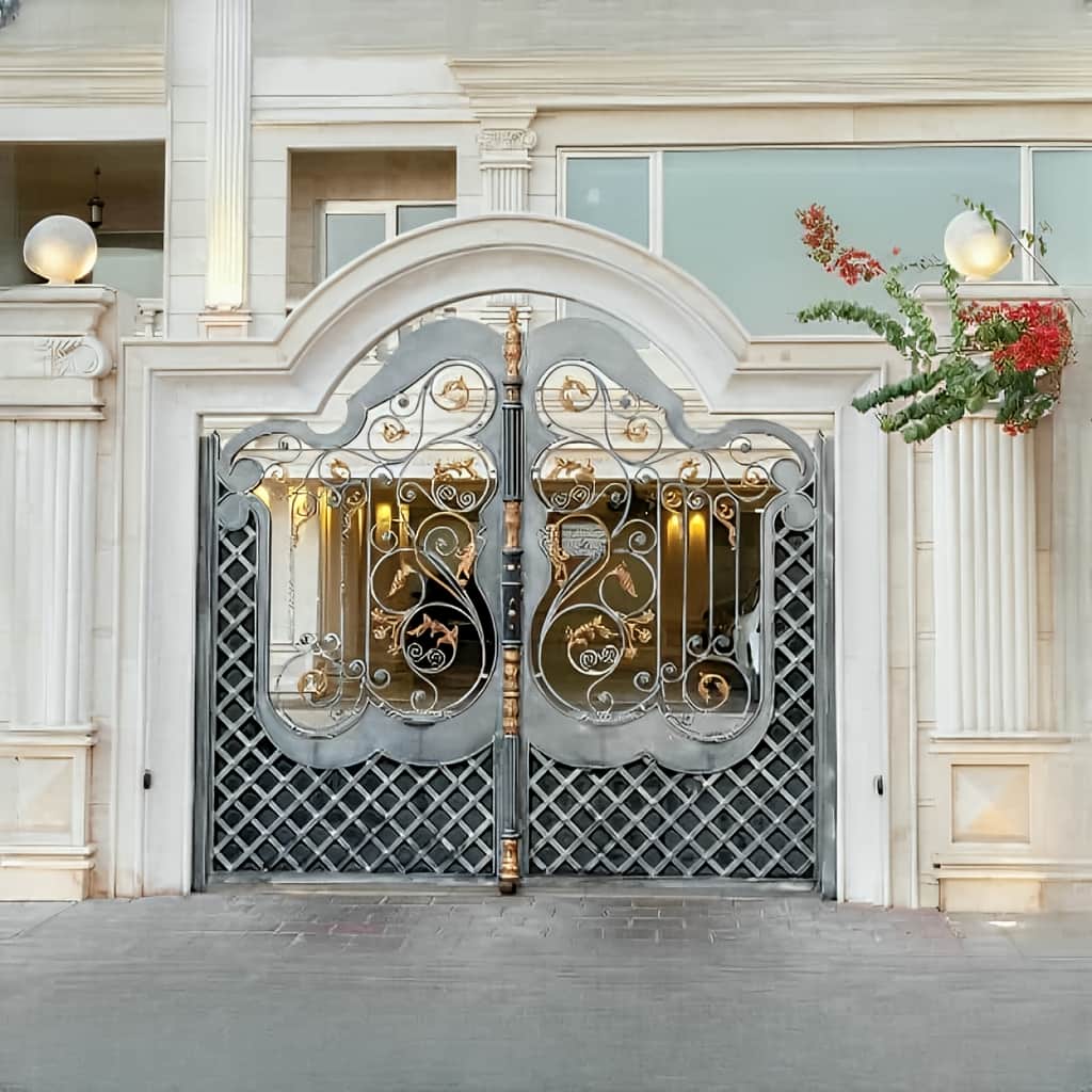 درب فلزی فرفورژه الهام گرفته از نقش های گل دار و آرک دار |