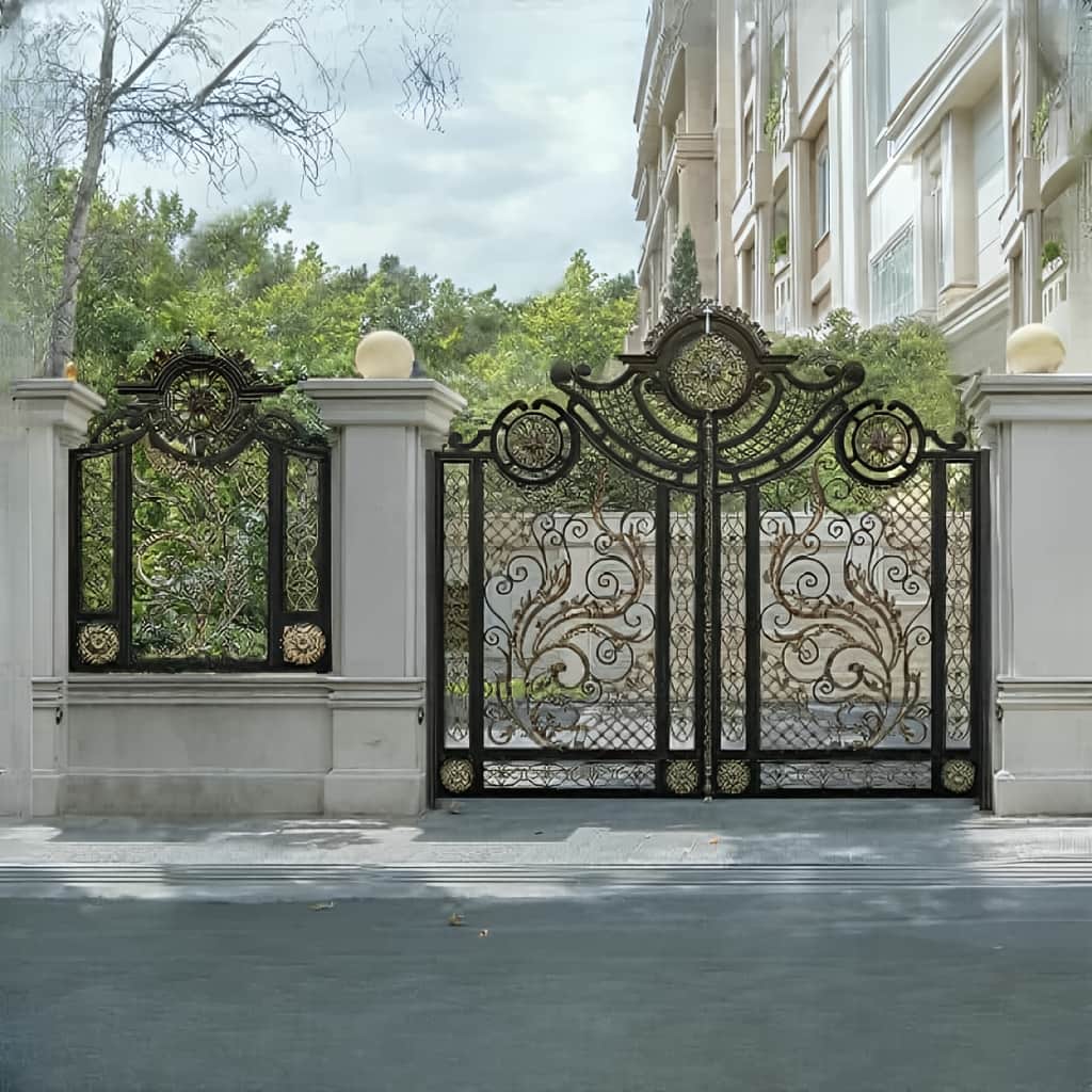 درب فلزی گل دار با طراحی لوکس مناسب ویلا و ورودی ساختمان |